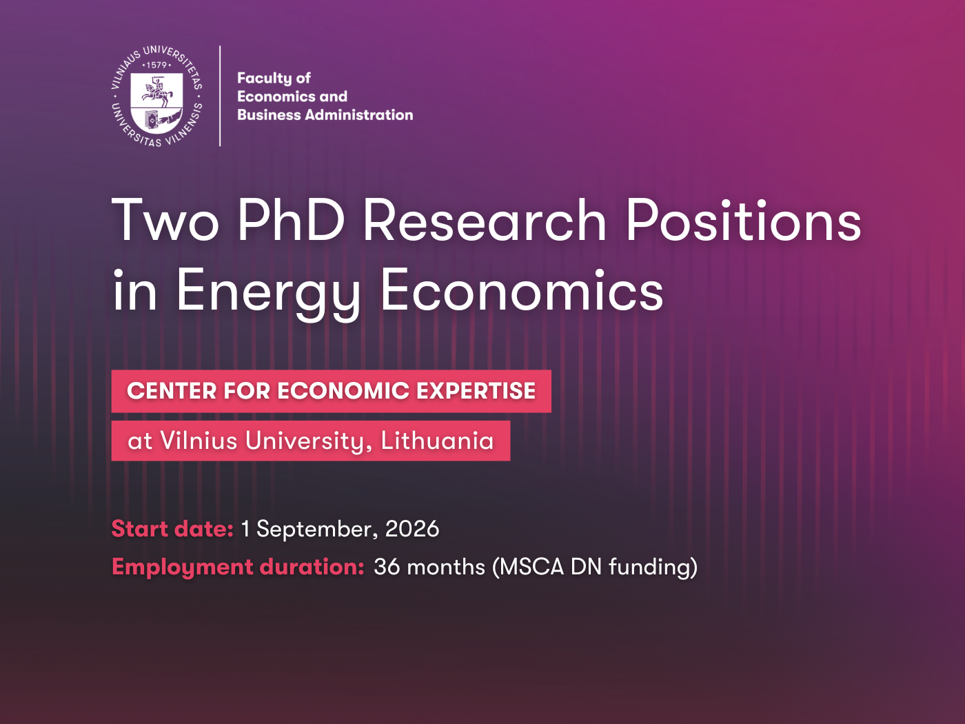 We are excited to announce a call for two fully funded PhD research positions in Energy Economics at the Centre for Economic Expertise, Faculty of Economics and Business Administration, Vilnius University (VU FEBA). The positions are funded for 36 months under the prestigious Marie Skłodowska-Curie Actions (MSCA) Doctoral Network ENERPOL, part of the EU Horizon Europe programme. These doctoral positions offer a unique opportunity to conduct cutting-edge research on household behaviour and the green energy transition within an international consortium of leading academic and industry partners. Below you will find detailed information about the positions, eligibility criteria, and application process.